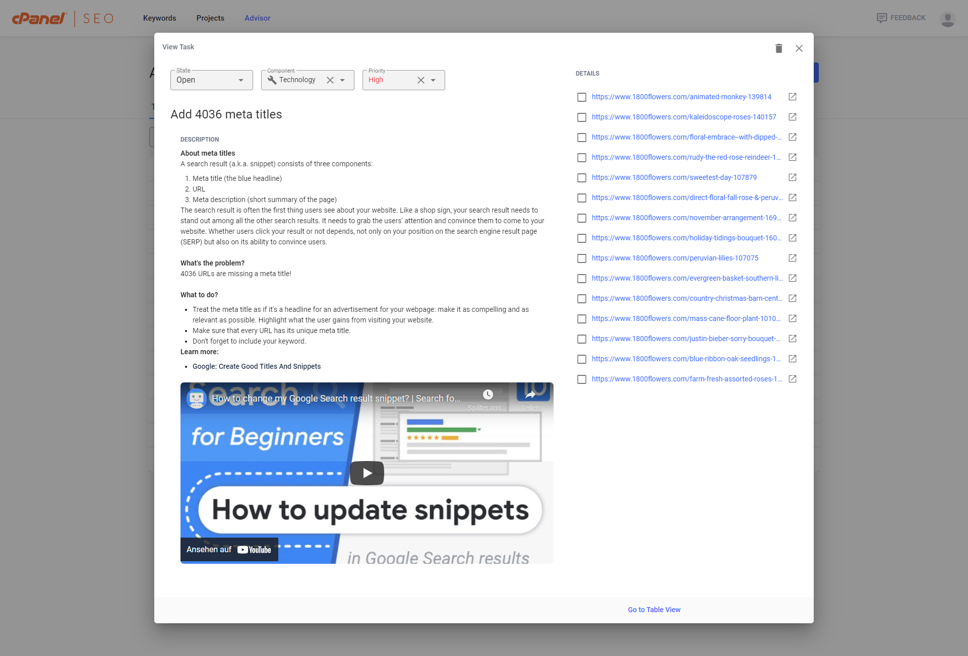 First, the tasks covering basic SEO measures are the same for everyone and are not tailored to your website or business. For example, we don't know whether you created a Google account for your business and set up Search Console or if you installed SEO plugins. If you already did—great work! Simply flag those tasks as Done.