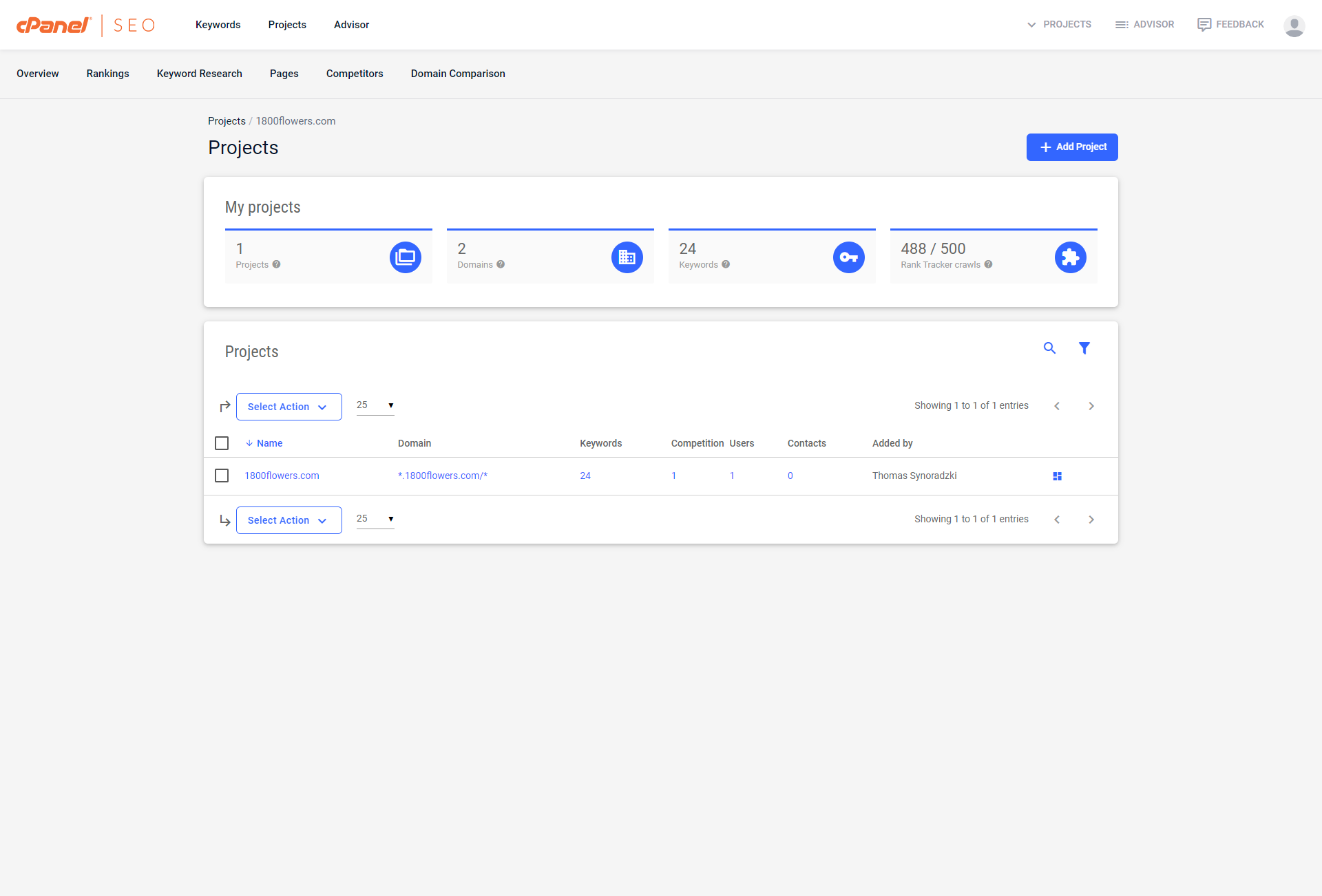 Keep in mind that you do need a Project for the Advisor feature to work. Also, most of the Advisor's tasks are tailored to a Project's website (usually yours or your client's). If you manage more than one website, you'll need to create an extra Project for each of them.